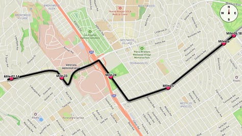 Miles 17.0 to 22.1 - Santa Monica Boulevard to Century City
